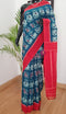 Teal blue is a rich and vibrant shade that falls between green and blue on the color spectrum. It exudes sophistication and modernity while retaining a sense of calmness and tranquility. The ikat body pattern add visual interest to the fabric enhancing the modern aesthetic of the saree, making it versatile for both casual and formal occasions.