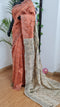 Crafted from the finest Banarasi cotton silk, this saree boasts a sumptuous texture, lustrous sheen, and unparalleled softness. The deep bottle green hue adds depth and richness to the fabric, creating a regal and captivating aesthetic that commands attention.