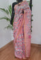 A subtle thin zari border and zari stripes in pallu (aanchal) adds charm to the saree. The end Tussels beautifully complete the look.