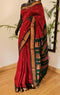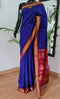 Embrace timeless elegance with the Blue and Red Gadwal Cotton Silk Saree featuring exquisite Jari work. The striking contrast of black and blue creates a captivating allure, making this saree a statement piece for formal events or celebrations.