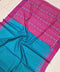 Tussar silk, also known as Kosa silk, is produced from the larvae of several species of silk worms, mainly found in India, which gives a rich texture to the saree. The handloom weaving involves the manual weaving of fabric using traditional looms, which is a labor-intensive process that results in unique textures and designs. Ikat patterns are created by resist-dyeing the yarns before they are woven into the fabric. Temple borders are intricately designed borders inspired by the architectural motifs found in temples, and add a touch of elegance and grandeur to the saree.