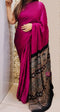 Made from a luxurious blend of modal and silk fibers, the saree drapes effortlessly, enveloping the wearer in a cocoon of comfort and elegance. The modal fibers lend a soft, smooth texture to the fabric, while the silk fibers add a subtle sheen and luster, creating a mesmerizing effect under light.