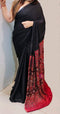 Made from a luxurious blend of modal and silk fibers, the saree drapes effortlessly, enveloping the wearer in a cocoon of comfort and elegance. The modal fibers lend a soft, smooth texture to the fabric, while the silk fibers add a subtle sheen and luster, creating a mesmerizing effect under light.