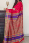This saree has lush Forest Green base meeting Regal Purple with a pinkish undertone, radiating warmth and royalty.