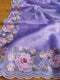 A delicate and very intricate floral embroidery is done along the border to create very exquisite drapes. The color palette for the embroidery beautifully complements the soft base color.