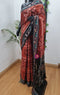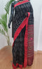 Classic combination of Red and Black Nabakothi saree with elaborate pallu. The border of the saree has thread work and ikat woven pattern.